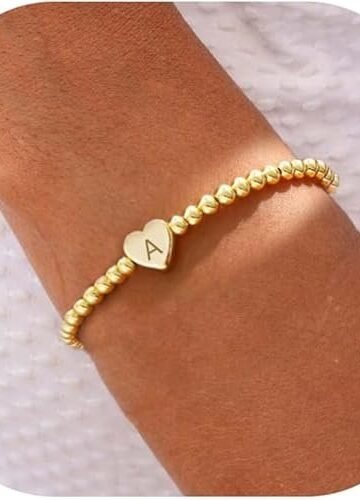 Christmas Gifts Stocking Stuffers Beaded Bracelets for Women Dainty Heart Initial Bracelet Letter A-Z Charm Stretch Bead Ball Bracelet Trendy Jewelry Gifts